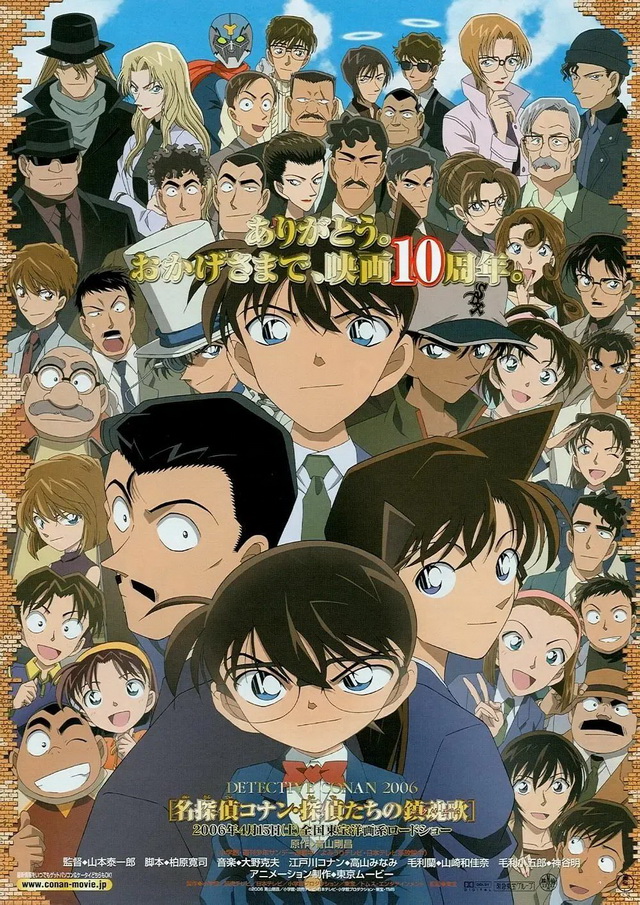 从《银翼的魔术师》开始执导柯南剧场版的山本泰一郎,一直在寻找将能带来票房的商业元素更好结合的方法。在第十部剧场版《侦探们的镇魂歌》里,为了“十周年”的特定纪念,柯南剧场版就首次打出了基德、平次甚至白马的高人气角色阵容,还有一段激烈的追逐戏。