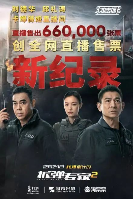 特别是在电影内容上,比起宣传功能,抖音可以直接参与到售票环节当中。《拆弹专家2》上映时,刘德华在薇娅直播间卖出60万张电影票,为《人潮汹涌》“带货”的直播在开始1小时后,观看人数就突破了3200万。
