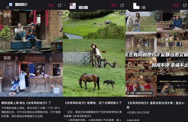 去年年底播出的剧集《去有风的地方》由于存在大量穿搭、景点、特产美食等女性向种草打卡点,又有着“逃离大都市寻找心灵宁静”这种符合一二线城市观众的精神潮流,该剧在小红书社区讨论度爆棚——在小红书上搜索《去有风的地方》,能搜到129万篇笔记。