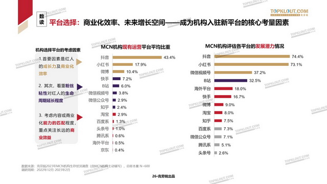 在平台选择方面,商业化效率与未来增长空间成为机构入驻新平台的核心考量因素,此外,粉丝粘性对红人的生命周期延长程度同样倍受重视。