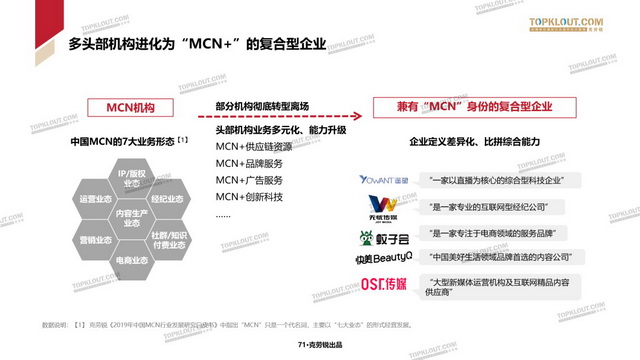 目前,多家多头部机构进化为“MCN+”的复合型企业,头部机构业务多元化、能力升级,部分机构甚至彻底转型离场。