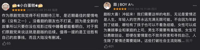 其次,这两部作品中的演员都并非大流量明星,保留原主演的情况下亦无需在片酬方面有过大的投入,加之其均为原创剧本,也没有了IP原著版权费的支出。从类型上来说,都市爱情的故事也注定了影片的制作成本无需太高——站在投资产出比的角度,它们更有望以小搏大,至少不至于血本无归。