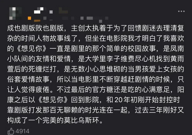 不过,事与愿违,即便是相同的主创把关,票房忽高忽低,口碑也难称满意,对各家公司而言,剧集改编成电影的方法论还在不断摸索阶段。