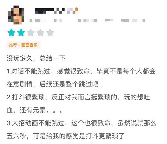 然而,一道制作理念与玩家需求间的鸿沟却悄然产生了。如果翻翻评分平台,大部分吐槽就集中在“又臭又长,可玩性差”。