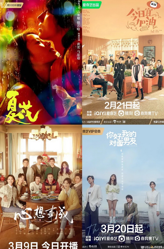 不过在一季度,稻草熊的产量有了显著提升。过去一年,稻草熊播映剧由前年的15部下降至4部,分别为《追爱家族》《浮图缘》《风吹半夏》《数风流人物》。但今年Q1,公司就播出了《夏花》《今日宜加油》《心想事成》《你好,我对面的男友》四部作品,与去年一整年的数量持平。