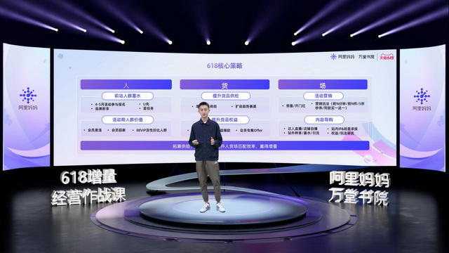 和往年618不同之处还在于,今年阿里妈妈将会和淘宝天猫各行业深度协同,当天,来自快消、服饰、家电、消电行业的负责人解读了相应经营策略,帮助商家结合行业特点进行经营节奏的调整。数智产品升级带来确定性增量,内容化和价格力带来潜在新增量,而行业侧的深度协同,则能带来更精准的行业增量。从产品、内容、价格、行业四个维度出发,这是今年618最核心的四个增量来源,商家可以据此更细致地找准挖掘增量的路径。