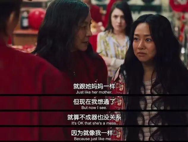 两代移民的观念冲突,也最终以美国价值观获得胜利,比如在《瞬息全宇宙》里,固守传统的妈妈杨紫琼最终为女儿向外公出柜,算是为美国的政治正确进行了又一次加冕。