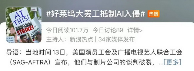根据外媒报道,此次罢工的导火索是SAG-AFTRA与制片商及流媒体服务公司的合同谈判破裂,而合同谈判的内容可能包括未来AI对群演形象的扫描、甚至包括永久使用权等等。换句话说,AI对编剧和演员工作权益的侵害,是本次罢工潮的最主要原因。