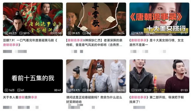 国剧创作者们对短视频的传播,也从过去的剑拔弩张,到如今大方拥抱。《唐朝诡事录》监制、长信传媒创始人郭靖宇认为,这个没有大IP、没有流量明星,没有大规模宣传的三无剧集能得到大家的喜爱,二创功不可没。“二创未来很有可能成为电影、长剧最重要的、版权反复售卖的助力器。”郭靖宇后来说。