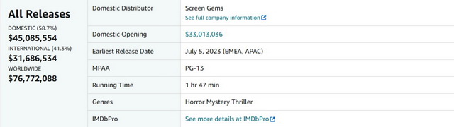 在北美,《潜伏5:红门》(以下简称《潜伏5》)首周末便斩获3301万美元,创下系列内部次高的开画成绩,成为暑期档首部夺冠的恐怖片;在海外,《潜伏5》也进账超过3千万美元,对比1600万美元的超低成本,预计将为索尼影业带来丰厚的回报。