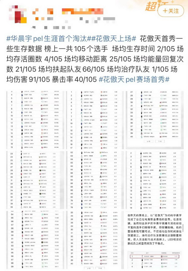 但在粉丝眼中,他就是那个即便不可能也的确做到了的“电竞男主”。首秀中,令粉丝骄傲的数据包括但不限于:场均生存时间排在联盟前三,场均治疗队友数据也达到联盟榜首等等。甚至有粉丝将花傲天首场比赛心率达到173,成为单局最高心率也当作一种“成绩”予以展示。