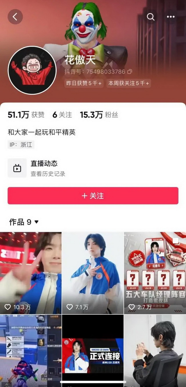 在抖音用作《和平精英》直播的账号“花傲天”目前只有15.3万粉丝,而他原来的账号“华晨宇”则有650万粉丝。不少路人也指出,花傲天的游戏直播很多时候人气并不如一些《和平精英》的大主播,账号所发布的短视频点赞量也不超过10万。看起来,华晨宇的大部分歌迷都并未被转化为花傲天的电竞粉丝。