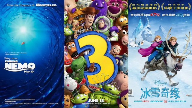 《海底总动员》《玩具总动员3》《冰雪奇缘》