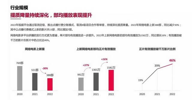 一方面,“提质减量”的口号确实已经深入到了行业当中,虽然数量在显著下降,但部均正片有效播放已经从992万提升到了1582万,正片有效播放量破千万的比例,更是从19%上升到了46%.