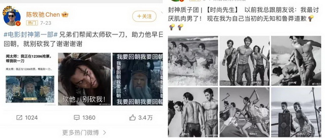 《封神第一部》首日票房不超过5000万,对比点映当天破亿的《孤注一掷》,市场表现不佳。但随着时间推移,观影人数增多,在熟人口碑的传播之下,危机得到改善,观众跳出片方传统陈旧的宣传叙事,聚焦于“质子团肌肉男”、“砍一刀助力闻太师回朝”等热梗,用娱乐化的方式进行各平台的自发宣传。