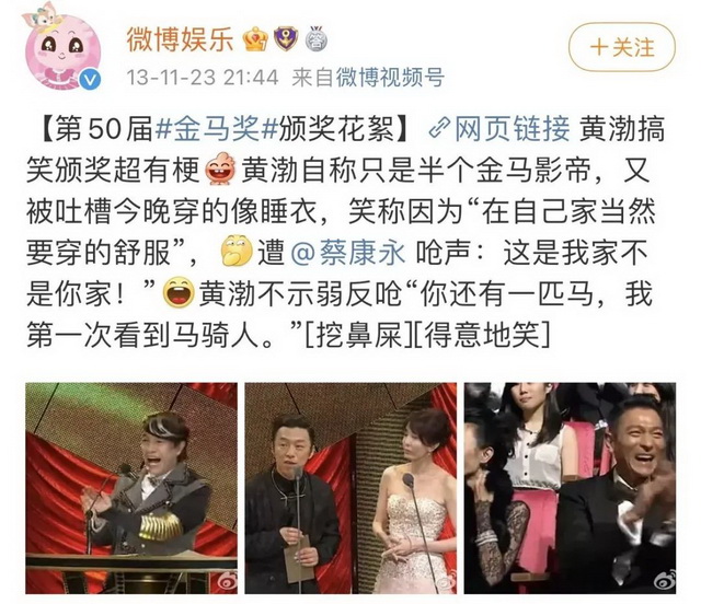 也是在那一年,黄渤主持了金马奖。女主持人调侃他的着装像睡衣,他说这几年一直来金马,把这里当家,回到家自然要穿得舒服一点;蔡康永说“这是我家,不是你家”,黄渤就调侃他的着装像马骑人。之后黄渤的“高情商名场面”越来越多,“林志玲想要嫁给黄渤”的话题也沸沸扬扬——“小人物”突然成了最具话题度的华语男演员了。