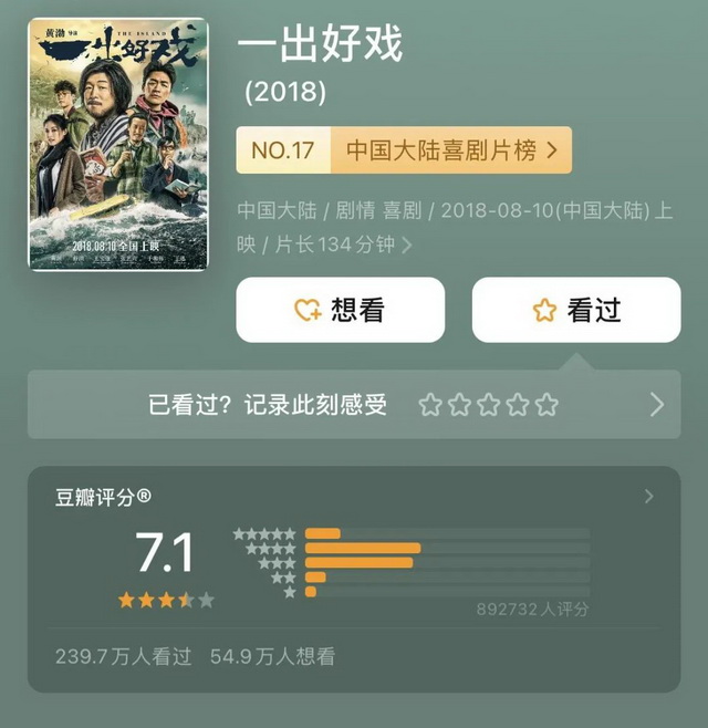 此时的黄渤还是常常说青岛话,但更多是展示幽默调动气氛——他再也不是那个操着山东方言的大银幕民工了。黄渤决定当导演,开始了《一出好戏》的筹备。2018年影片上映,13亿多的票房和豆瓣7.1分,名利双收,曾经介绍黄渤第一次拍电影的高虎说,“黄渤天生就是混演艺圈的料。”
