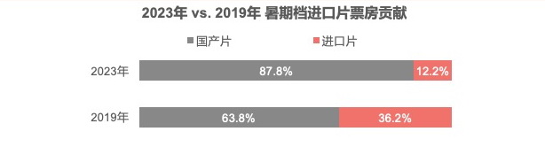 眼看国产片形势一片大好,进口片却继续萎靡不振。从今年暑期档票房榜单上可以发现,18部进口新片在暑期档上映,仅贡献12.2%票房。票房最佳的《变形金刚:超能勇士崛起》排在第9位,票房占比3.1%。