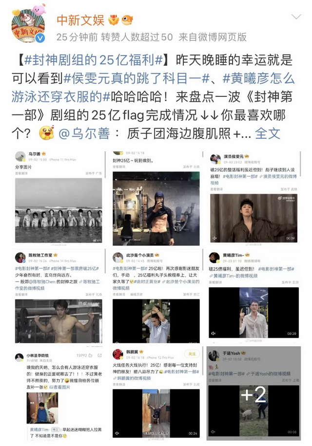 《封神第一部》相关微博下,控评等狂热的饭圈语言开始大规模刷屏。演员超话呈指数型增长,其中,于适超话有23.1亿阅读量,一周新增互动360万。