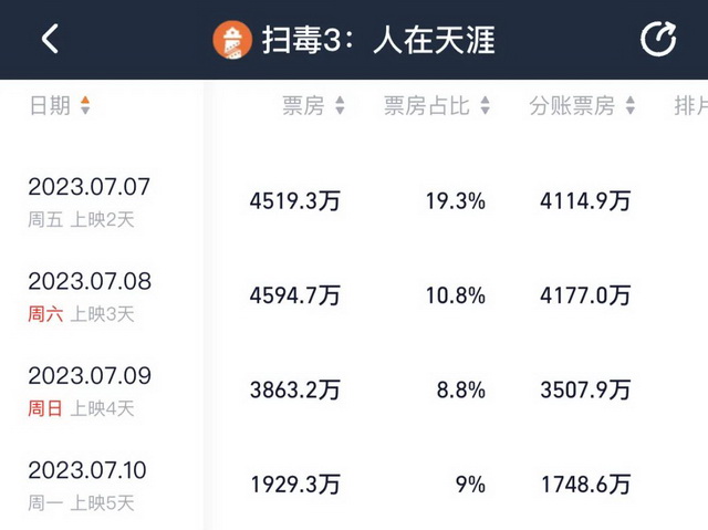 曾打造出《拆弹专家2》的寰宇,复刻港片套路,《扫毒3》上映第四天,票房占比就跌到了个位数,仅为8.7%,远不及同日上映的《八角笼中》38.3%,最终票房仅为2.84亿。