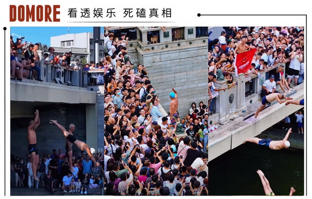 当梗越造越多,狮子林桥上跳水人数激增,甚至引来外国人士、跳水冠军、各路网红在狮子林桥上一跃而下。