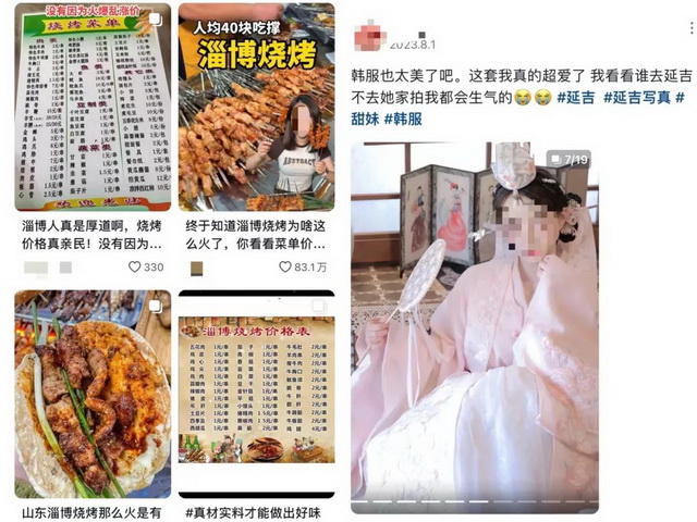 更加现实的因素在于,这些新生代网红城市对于游客来说可得性更高。相比于一二线热门旅游城市,延吉、淄博明显花销更低:春夏期间风靡全国的“淄博热”,背后的“具体事件”是一元一串的烤素菜、两元一串的烤肉串、人均五十就能吃撑一顿的低消费烧烤,最终为他们在清明五一小长假赢得众多人流。