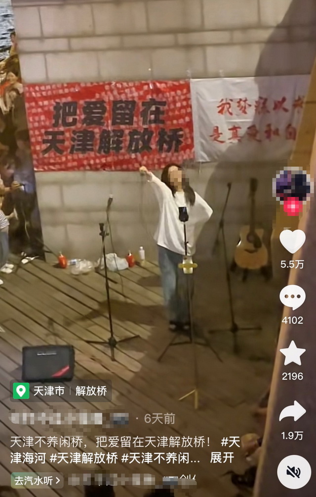 当人群过于聚集,导致桥缝出现开裂后,天津政府出于安全考量,暂时叫停了狮子林桥跳水,开始桥梁维修改造。人流从桥上开始来到桥下,当地管理部门的温和方法仍在延续。