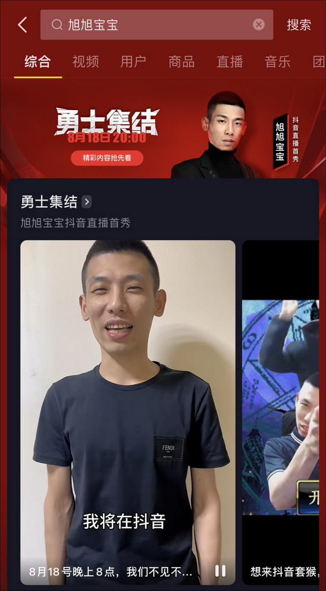 8月18日,旭旭宝宝在抖音开启了直播首秀,开播仅仅10分钟,直播间人气就突破200万。根据热浪数据显示,旭旭宝宝首播总观看人次达6045万,人气峰值超过217万,收获了6.21亿点赞,新增粉丝超过329万。