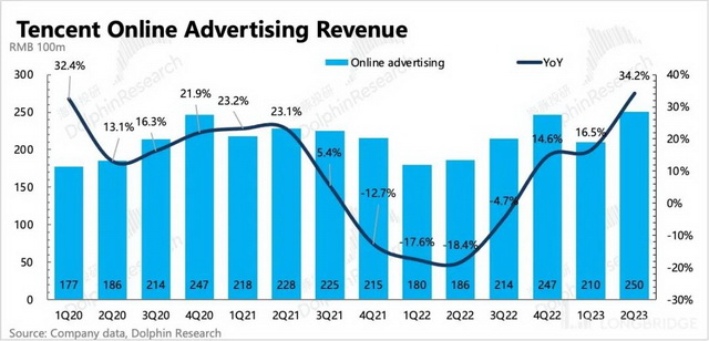 而从广告收入的来源上看,来自视频号直播电商的广告收入不可忽略。据腾讯管理层透露,视频号直播电商的GMV规模目前达到年化几百亿的水平,而二季度该数据同比增速是150%。
