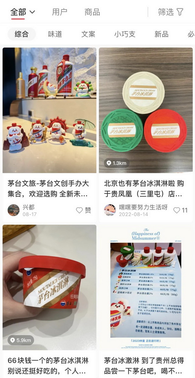 从2022年5月i茅台APP上线之后,茅台围绕着年轻人的兴趣不断推出新品:咖啡、冰淇淋、手办、徽章、冰箱贴……