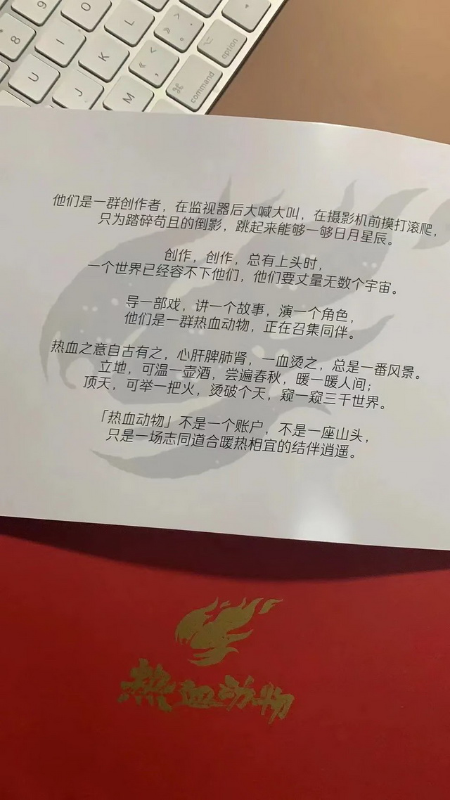决定拍这部剧后,他成立了公司,厂牌取名“热血动物”,意为“一场志同道合暖热相宜的结伴逍遥”。这个厂牌集结了一批和他同样热爱青春热血题材的创作者,誓言“要丈量无数个宇宙”。