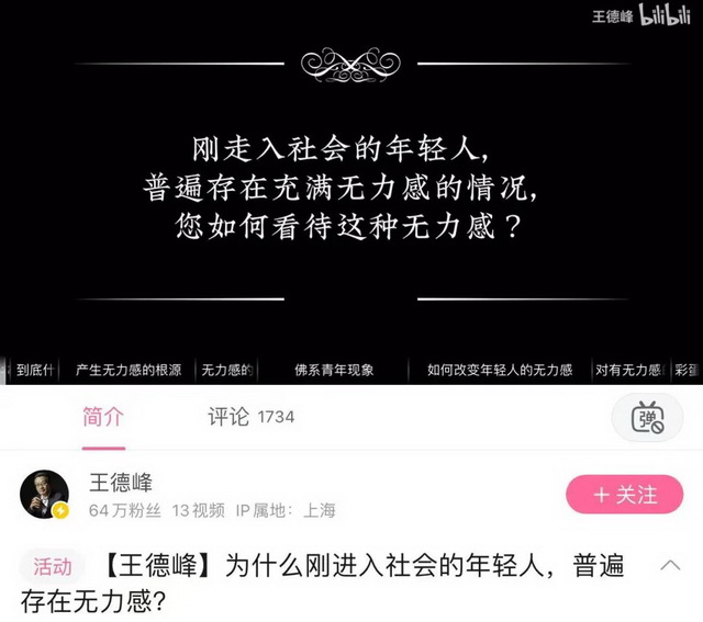 尤其主讲哲学、命理学的王德峰的走红,更加从侧面证明年轻一代对于现实社会的无力、失控与迷茫,转而寻求形而上学虚空的慰藉。