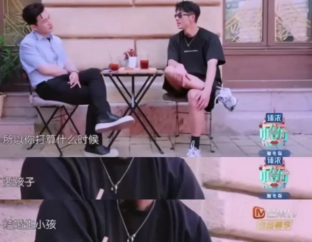 《好事成双》开播前,黄晓明的上一个热点是《中餐厅7》里的一段对话,在和许光汉街边闲聊的过程中,黄晓明突然发问,“所以你打算什么时候要孩子啊?”突兀硬转婚恋话题,被网友直言,像老家亲戚没有边界感的关心。