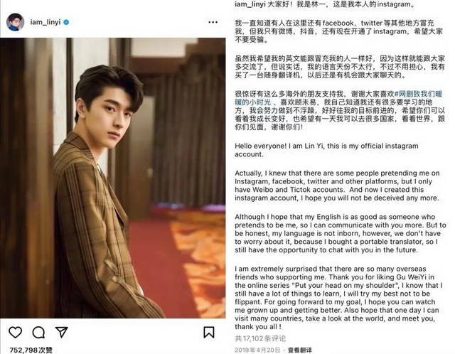 后起之秀林一也毫不逊色。作为《致我们暖暖的小时光》主演,林一在东南亚地区收获了大批粉丝,甚至开通ins的第一条内容就是感谢全世界各地观众对顾未易的喜欢。