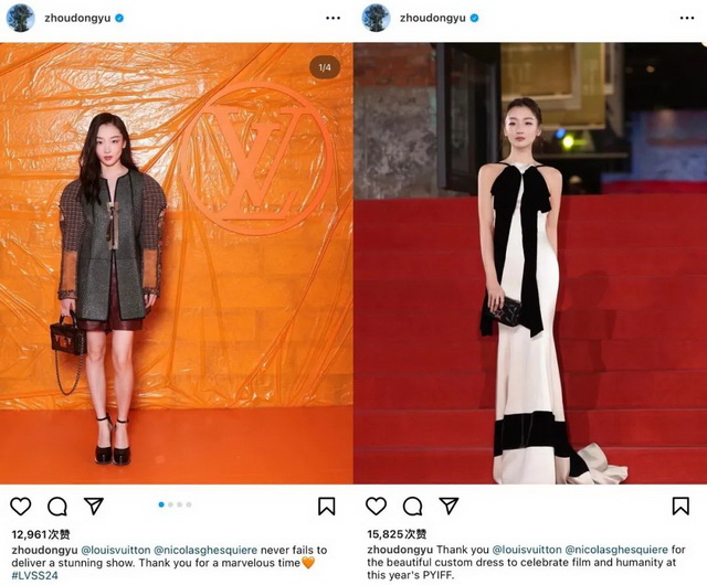 王源、王鹤棣在ins上与BALLY、LV的互动