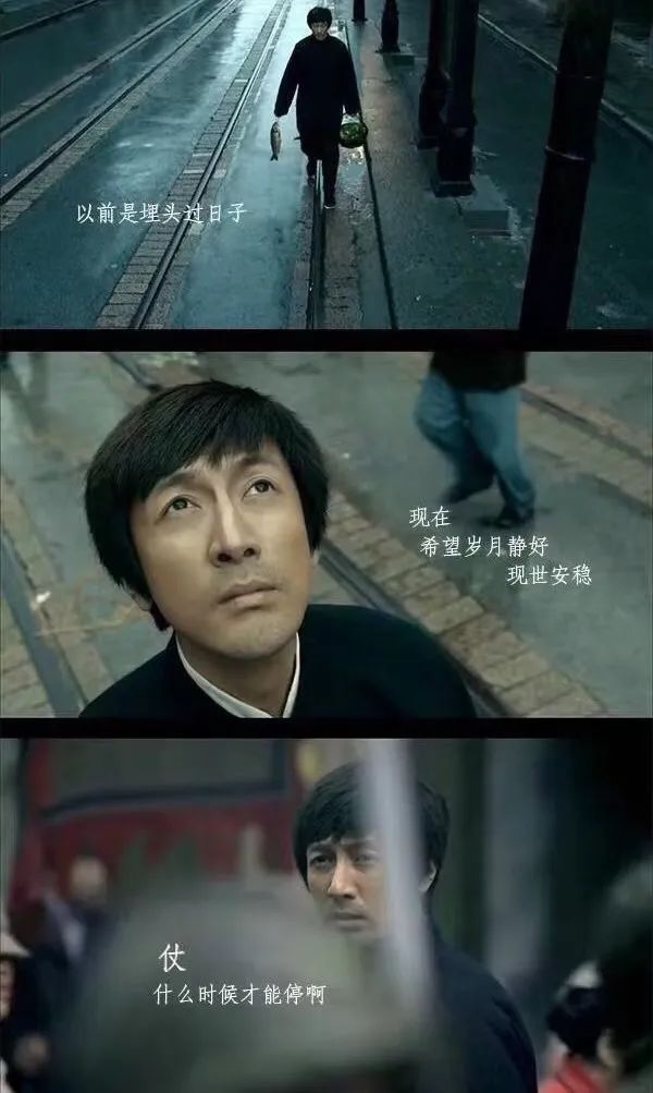 《红色》的结尾,“徐天”牺牲,“田丹”在船上打开了“徐天”写给她的情书,信里写:“以前是埋头过日子,现在,希望岁月静好、现世安稳。仗什么时候才能停啊!