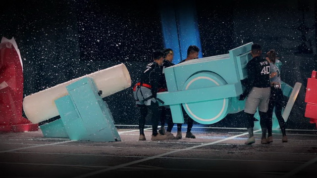 甚至在第一轮演练结束之后的淘汰环节,5名被投票出去的选手需要一起拉起一个400斤的棋子停留5分钟,才能获得5人全员留下的机会——这种规则本身,就导向了团队的重要性。