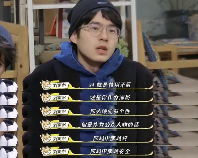等到现在,艺人发条微博都要经历团队审核考量的时代,当“内娱活人”太危险,已经变得足够稀缺。刘昊然就曾经在综艺上说过:“作为公众人物,你越中庸越好,越中庸越安全。”艺人上综艺,也会得到经纪团队的嘱托,孟子义第一次去《桃花坞》,就被经纪人千叮咛万嘱咐说话要过脑子。