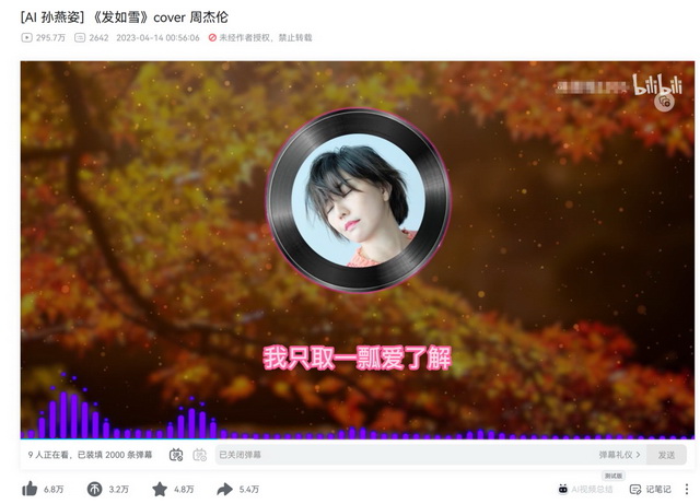 音乐领域的上一个大热点,莫过于上半年的“AI孙燕姿”。在B站等平台上,运用开源项目So-vits的AIGC版孙燕姿歌曲被数以千计地生产,能唱《发如雪》也能唱《好汉歌》,“AI出来后第一个失业的是孙燕姿”一度登上微博热搜。