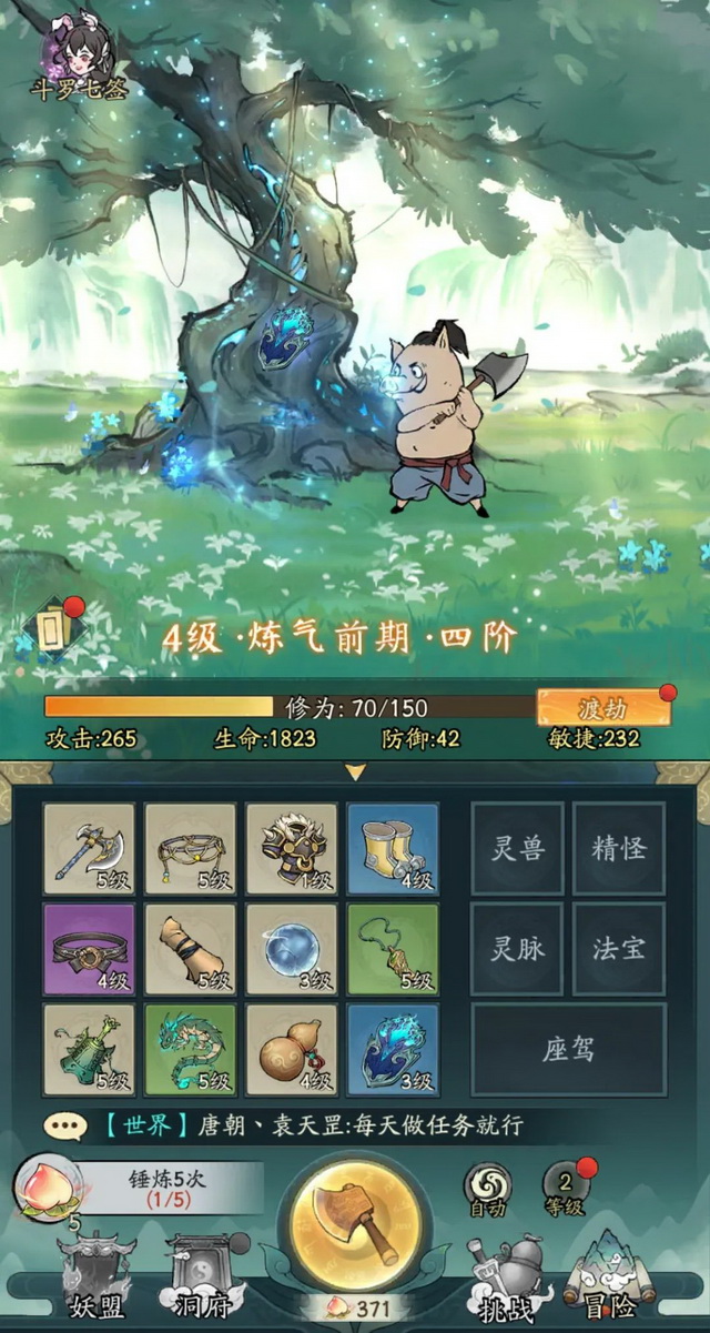 三七游戏占位也很早,除了率先试水SLG和RPG品类,三七今年还有两款成功产品《寻道大千》和《灵魂序章》,而它们都是依照《疯狂骑士团》的玩法原型进行迭代的产物。《寻道大千》用了仙侠题材,表现形式换成“砍树爆装备”,《灵魂序章》套《斗罗大陆》IP,本质上都是“开箱子”。