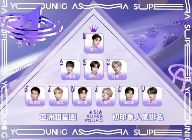 乐华娱乐稳坐阵中,旗下艺人程潇和朱正廷在《亚洲超星团》担任导师,在65名选手中,有12位来自乐华。11月19日,节目在官博上公开了初印象人气排名,有6位乐华的选手进入前十,排名第一的是曾参加韩国选秀《Boys planet》的奥利。