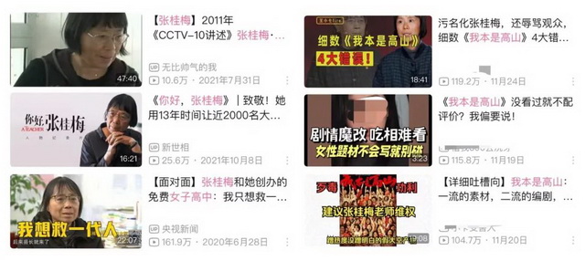 打开B站搜索“张桂梅纪录片”可以发现,几部代表性纪录片,播放量远远不及《我本是高山》的争议视频。