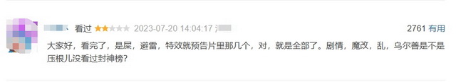 同为暑期档的《封神》,其实并非真实人物或事件改编,原著不过是一本“演义”。但打开豆瓣热门短评,也有不少因为“魔改”、“不符合原著”而打出的差评。