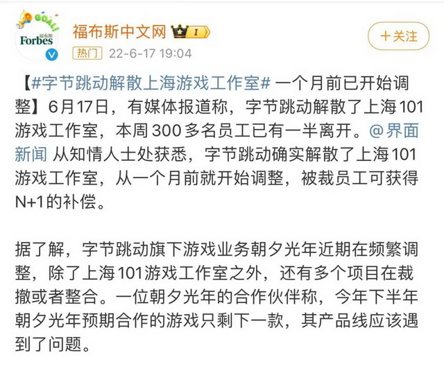 就连业务收缩,都并非首次。去年6月,朝夕光年旗下的上海101工作室整体解散,涉及300多名员工,随后字节又对北京绿洲、杭州江南等多个工作室进行了裁撤。