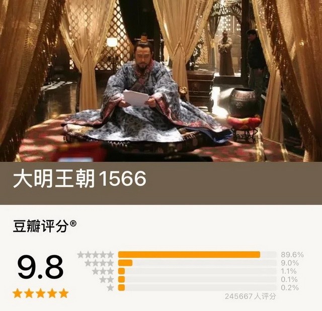 至少在今天,豆瓣剧集评分依旧值得参考,只不过“参考指南”变得越来越复杂了,除了分数本身,还需要结合打分人数、分型、剧集类型、高赞短评等等,才能判断某部剧究竟是否“值得一看”。但评分注定不能给所有人带来参考,毕竟,就连以9.8分排在国剧榜首的《大明王朝1566》,还有490个人打一星。
