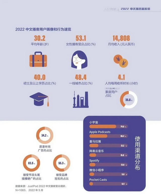 另外,播客也逐渐发展成一种选择,吸引了一些一二线高净值的消费人群,但目前的播客发展样态不成熟,主要依靠长音频不断进行渗入式品牌价值传播,适合高消费产品。这种品牌价值感的提升,对电影商品而言,很难转化成大规模的票房,最多只是触达影迷群体。