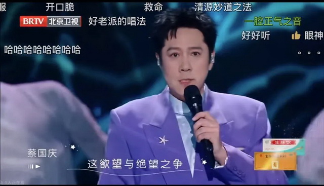 北京卫视也选择了“老艺术家搭新曲”的模式,同样选中《悬溺》,演唱者则是蔡国庆。虽然表情没有张信哲看起来痛苦,但北京卫视将标志性的前奏进行改编,以及改变演唱风格,原曲的破碎感被彻底改为大气国风,让观众感叹“这不是悬溺而是圆寂”。