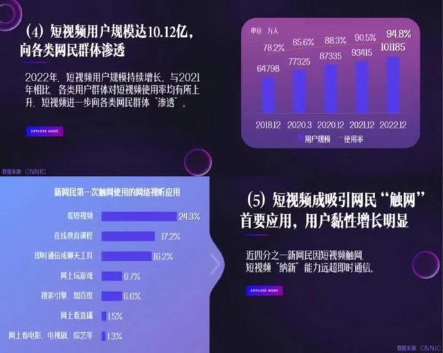 据《中国网络视听发展研究报告(2023)》短视频用户规模已经达到10.12亿,且有近四分之一的新网民因短视频触网,“纳新”能力远超即时通信。足见短视频对触达下沉市场的重要性。