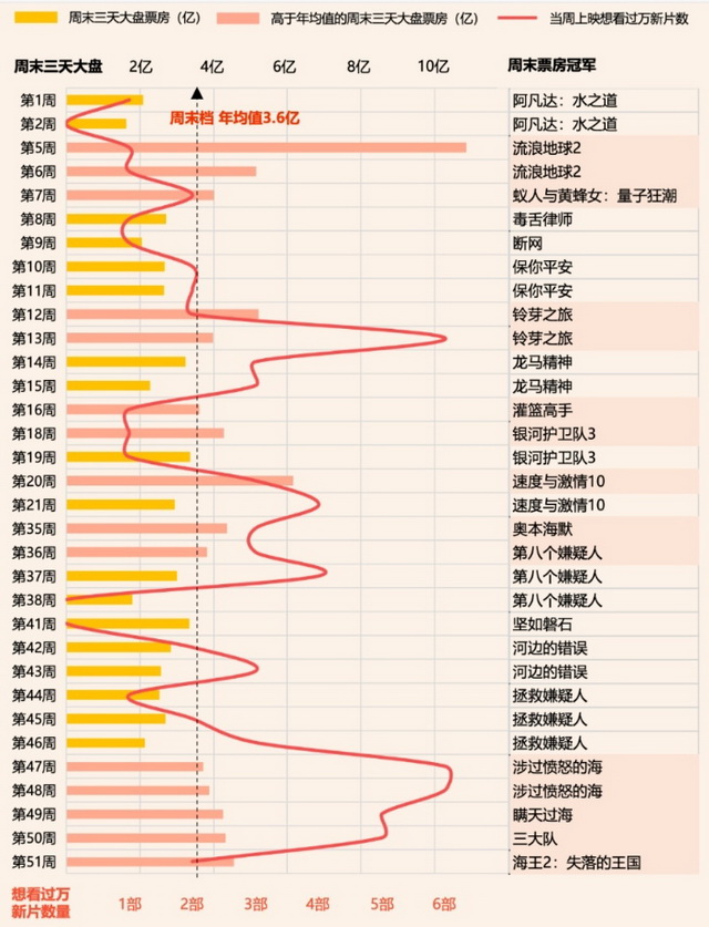 这反过来更说明了进口片票房对电影行业的重要价值,因为观众普通周末的观影习惯和影院的冷档期收益,非常依赖进口片的供给。我们常说理想的电影市场不能过度集中在热门档期,得让冷档期也“热起来”,才是获取大盘增量的关键。然而,填充冷档期的进口片,本身就难以起到行业层面的拉新作用,齿轮“转起来”的初速度丢失了。