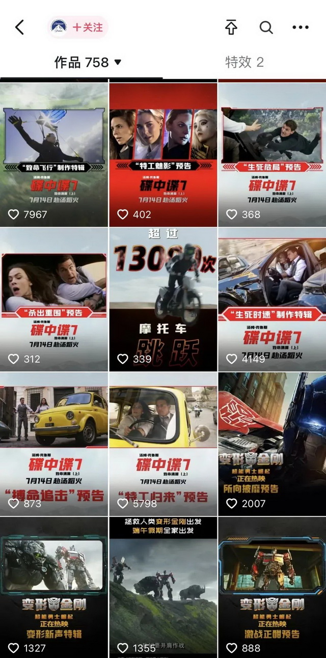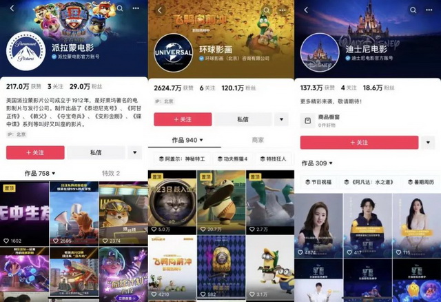 除此之外,版权理念还会导致更多的隐形限制。比如开通官方抖音账号,对于国产片而言几乎是必备动作,但除华纳和索尼之外,大部分好莱坞公司是放在影业的统一账号中进行宣传的。因为开通官方抖音也涉及授权素材二创的问题。